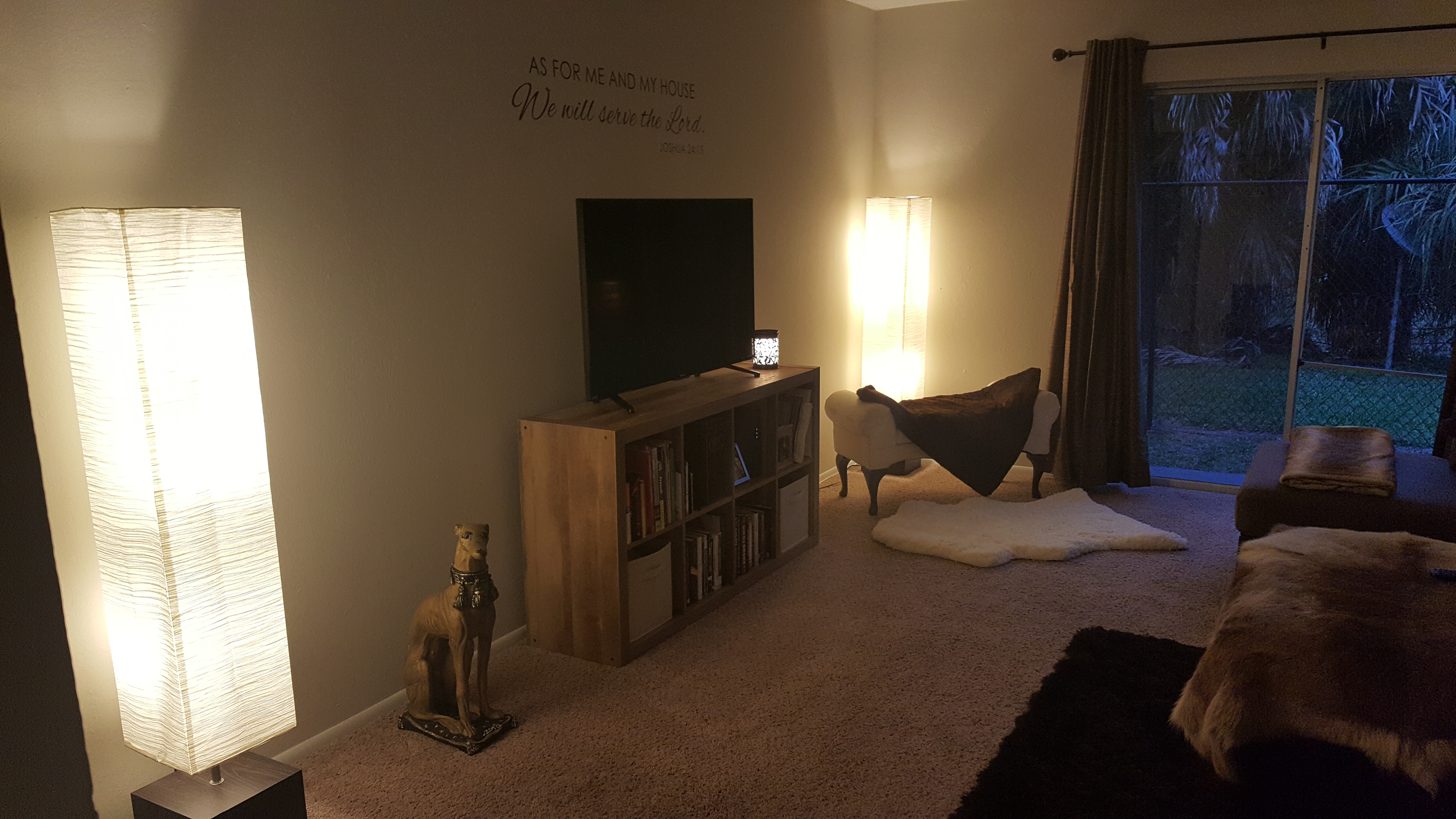 The interior space of my dwelling is three dimensional. It is functionally divided by mature, but unpronounced vertical, horizontal geometric lines. The effect of the symmetrical division promotes an organization of domesticated living space. It does so by utilizing the expanse optimally based upon its frequency of use and the proximity needed to fully benefit by its placement in connection with other areas within the interior.