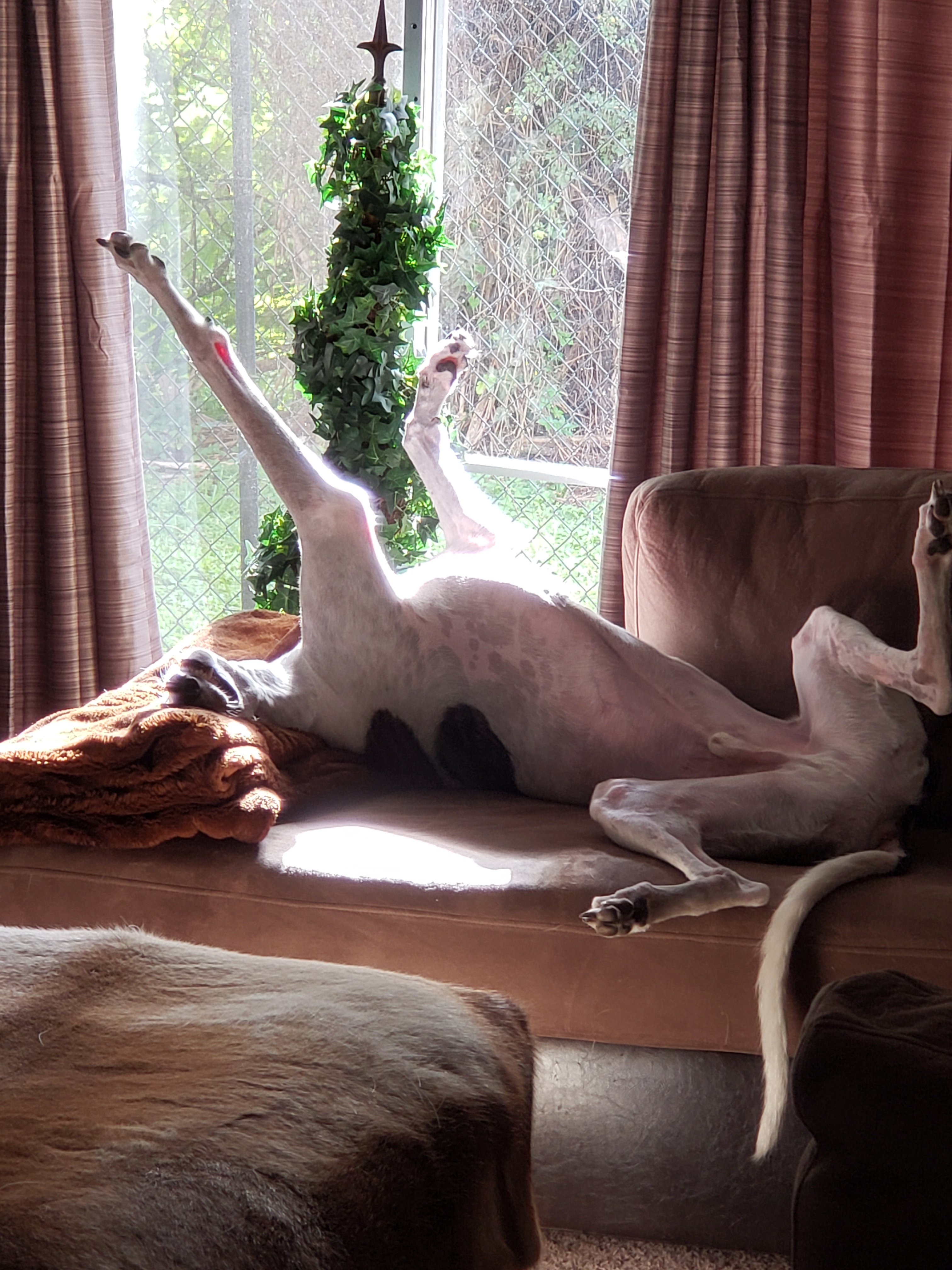 Six months later, I returned to Florida; I met my Asher at a rescue center in Sarasota. It was also befitting because we both needed saving. Asher was quite the opposite of Baron. It was Baron and I against the world whereas Asher enjoyed being with other greyhounds and found the transition to home life without another grey difficult. Que Hannah.